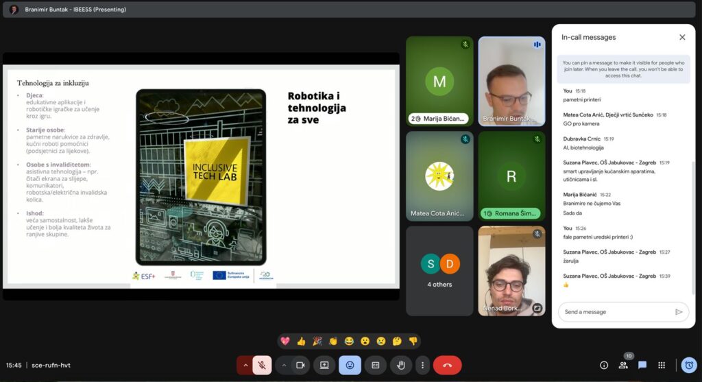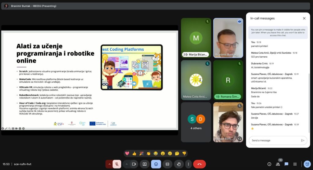 Tijekom izlaganja predstavljeni su primjeri inovativnih alata i digitalnih rješenja koji se mogu primijeniti u odgojno-obrazovnom procesu – uključujući platforme za učenje programiranja i robotike, virtualne simulatore, te primjenu umjetne inteligencije i pametnih tehnologija u učionici. Poseban naglasak stavljen je na važnost razvoja digitalnih kompetencija učitelja i odgojitelja, te na povezivanje tehnologije s praktičnim učenjem.